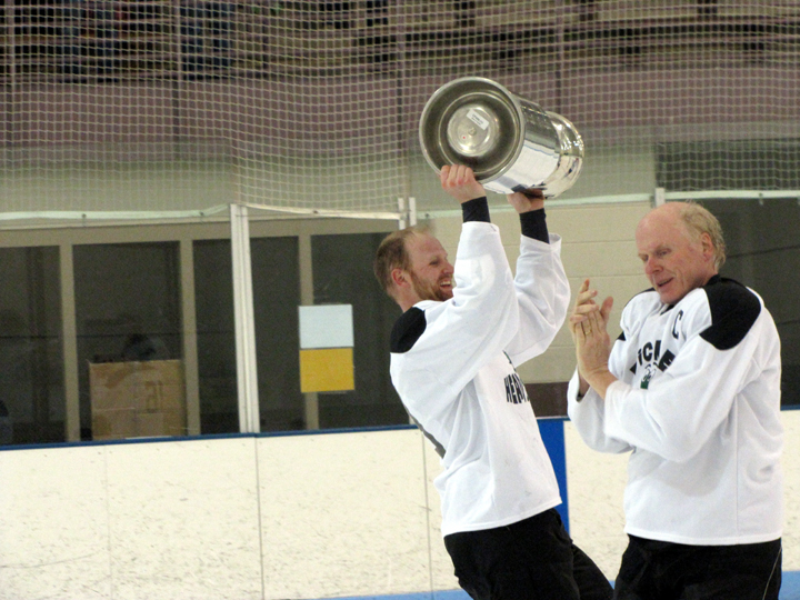 Click on the pic above to download a short video of my son and I skating the Cup. It's not the NHL but it'll do...
